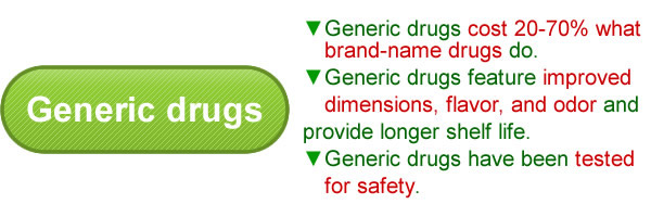 As you may have gathered from television ads, generic drug are drugs introduced after the period of exclusivity of brand-name drugs (i.e., the term of the drug patent, in principle 20-25 years) has expired. Featuring the same active ingredients as brand-name drugs, they are available at lower cost due to lower development costs.